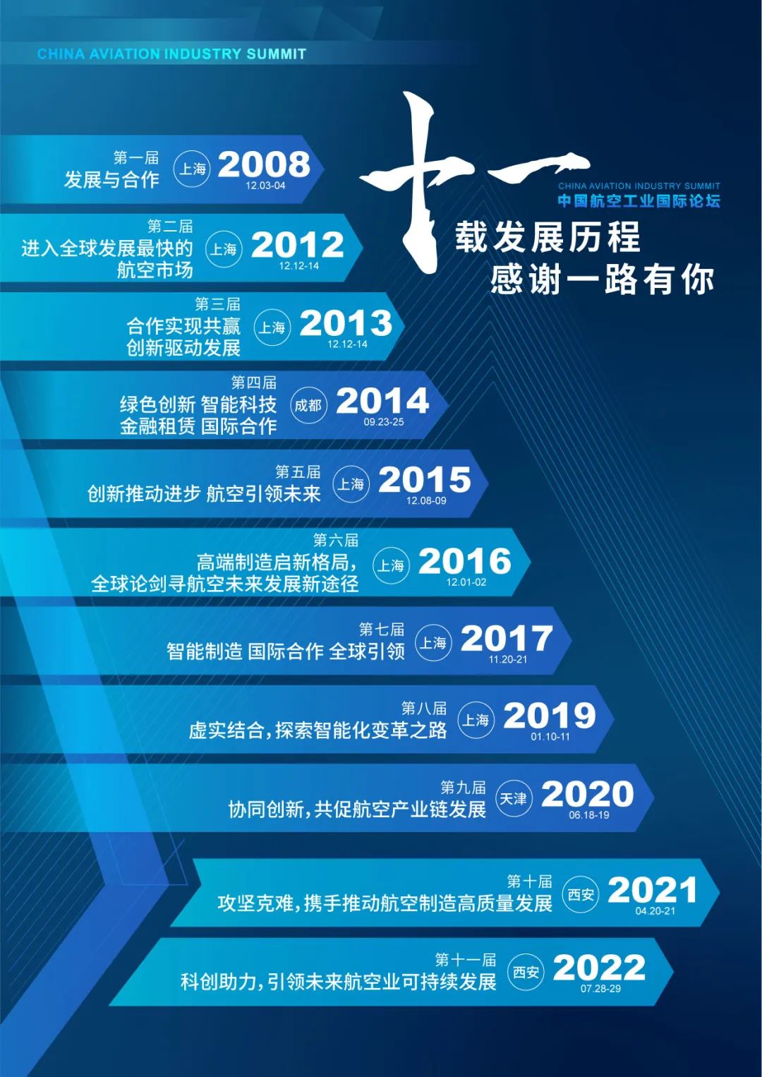 “中国航空工业国际论坛”在上海、天津、西安等地已经成功举办十一届。新背景下,为进一步促进航空业高效、绿色发展,共同推动航空业的战略规划,“第十二届中国航空工业国际论坛”将于2023年4月20日至21日在陕西西安举办。届时,近300位来自全球的飞机设计、制造、装配、测试、运维的相关企业与研究院所的高管、专家、学者汇聚西安,通过产学研交流共同探讨实现航空产业发展突破的关键问题,共谋合作发展之道。诚挚邀请您莅临交流!