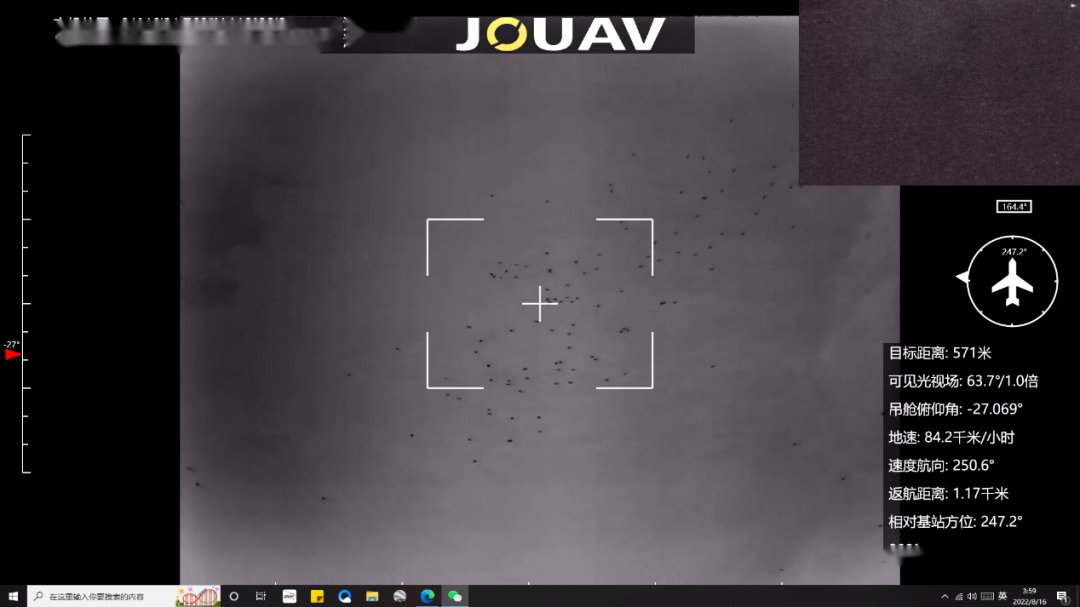 在央视报道的画面里,清晰见到大鹏CW-15D警用无人机监控系统搭配30倍光学变焦可见光设备执行任务,摄像机画质更锐利,热成像传感器更高的热灵敏度,提升了夜视环境的画面辨识度。同时,AI辅助功能,进一步优化目标的识别和跟踪算法,对可疑人员、车辆持续地观察,自动标绘船只,统计船只数量。