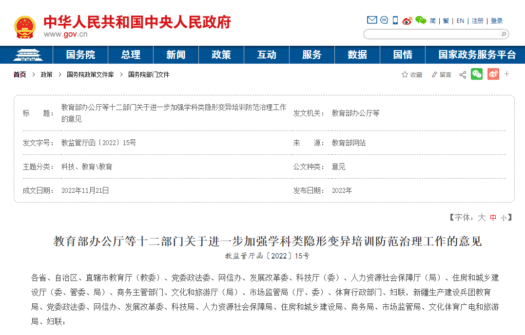 2. 十二部门再发重磅文件:强化学科类隐形变异培训防范治理