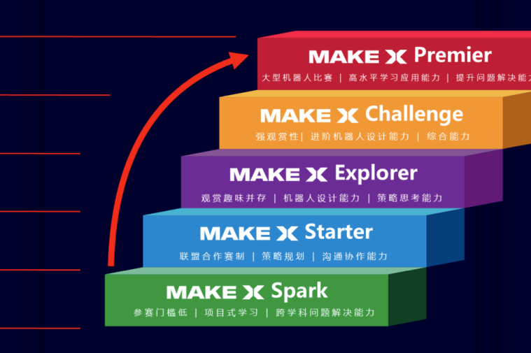 MakeX 注重科技赛事活动与教育的结合,经过长期的研发和反复的打磨,目前已经形成了一个完整专业的机器人赛事体系,分为全球总决赛、洲际锦标赛、国家赛、大区赛、积分赛、俱乐部联盟精英赛、海外地区赛事等各级赛事,并配备了完善的机器人指导教师及裁判培训认证体系,实现了线上与线下模式相结合、软件与硬件相结合、赛事与教学相结合的模式,能完整覆盖各学龄段青少年的学习需求。