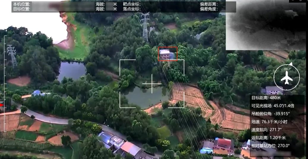 垂直起降固定翼无人机搭载红外与可见光光电吊舱开展输电通道外破巡视,无人机吊舱视频实时回传至地面指挥中心,光电吊舱支持30倍光学变焦,在150m—200m高度可覆盖输电通道带宽300m左右,可清晰发现以及定位违法施工、违章建筑、飘挂物等外破隐患。