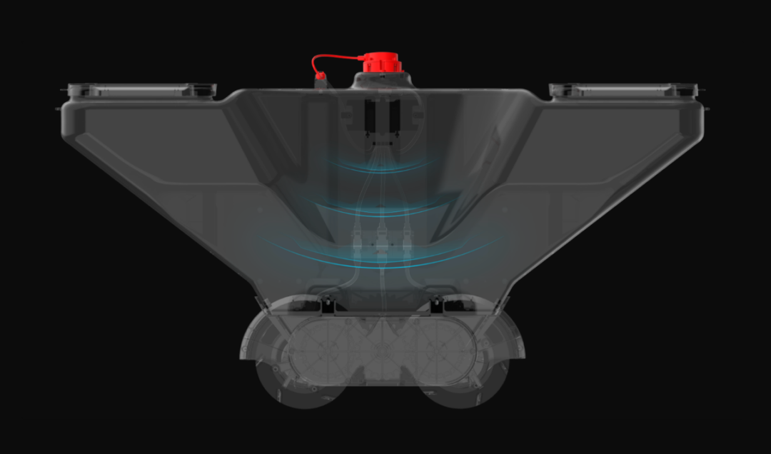 3. 还有其他的小细节来进一步保障播撒精准性:智能料箱采用非接触式料位传感器,实时检测剩余料量。不受肥料腐蚀、粘附,更加精准可靠,进一步防止绞龙空转、漏播。有 4 款不同尺寸的绞龙可供用户选择,无论是大颗粒肥料、饲料,还是小颗粒的种子,都可以精准可控。
