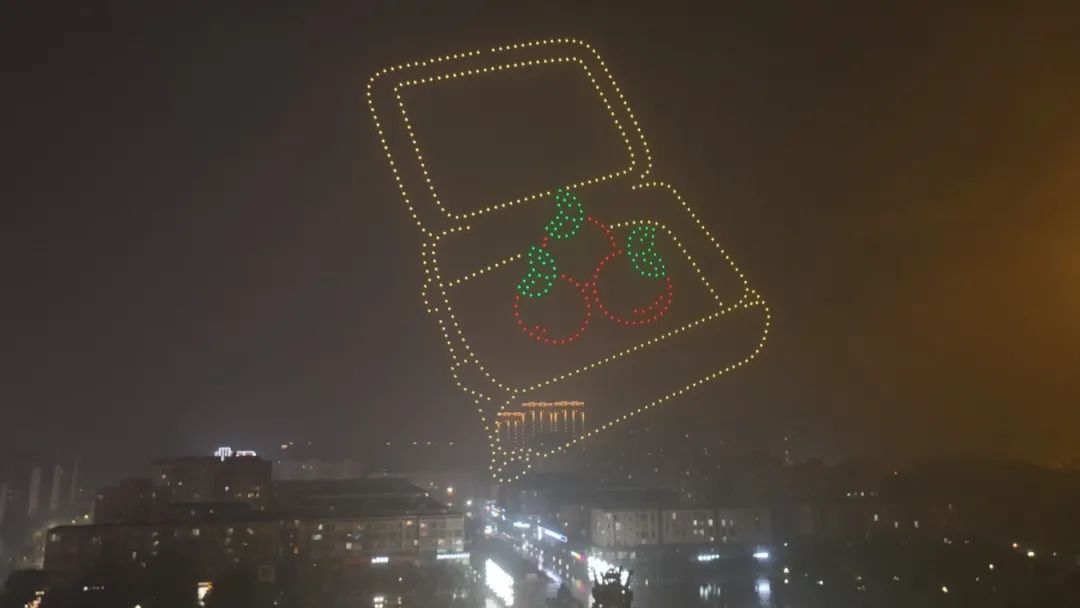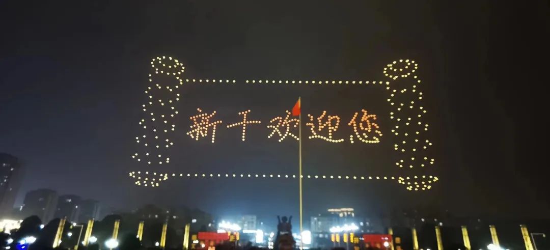表演开始后,伴随着夜色,众多无人机在空中列队交错,14组不同内容的无人机造型图案,以科技手段展示新干历史人文盛景,在光影的变幻中带我们领略夜空中不一样的新干之美。
