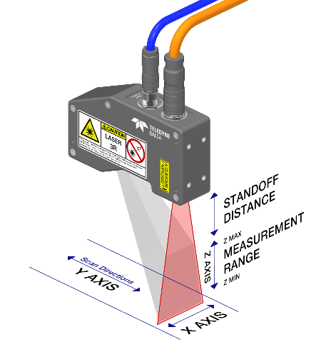 传感器上成像的激光线的距离、角度和位置被用来计算物体沿激光线的高度(Z)和宽度(X)。两个连续轮廓之间的已知位移提供了沿运动的长度(Y)。