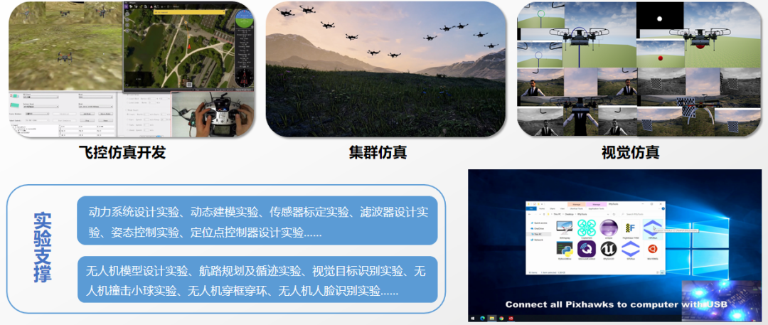 无人系统仿真平台是专为无人平台飞控系统开发、大规模集群协同、人工智能视觉等前沿研究领域,研发的一套高可信度的无人控制系统开发、测试与评估平台。支持学生进行无人系统仿真、半实物仿真,基于仿真平台完成无人机系统结构设计,并通过外部实物完成系统集成和测试,从而掌握无人机全开发流程。