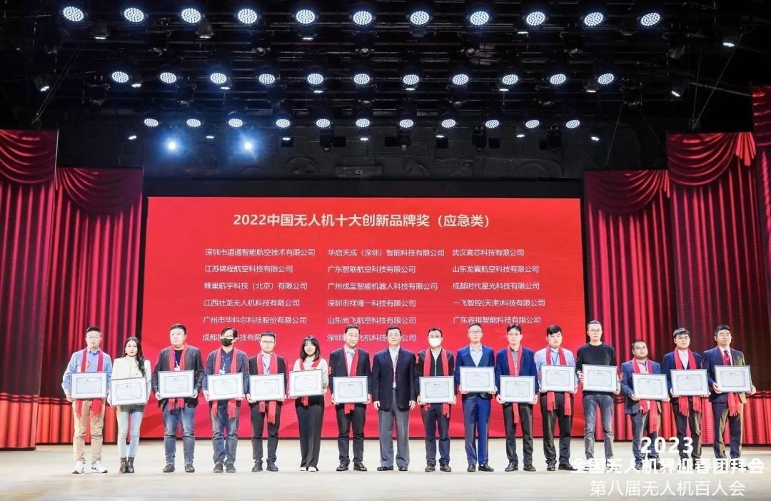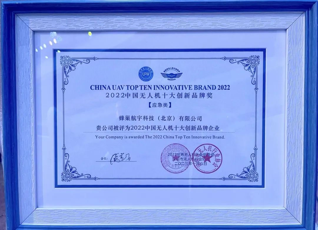 蜂巢航宇科技(北京)有限公司获得2022中国无人机十大创新品牌奖(右二)