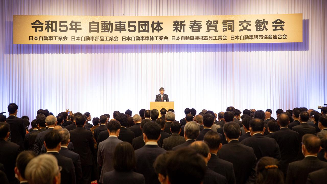 每年,日本汽车行业协会( 4个协会组织)都会举办新年晚会,但由于新型冠状病毒感染的蔓延,去年和前年都被取消了。趁着时隔三年,义工销售协会加入了此次活动,并决定由五家机构共同实施。