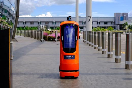 新加坡樟宜机场使用的机器人,在人们进入时进行检查。它还能测量体温。
