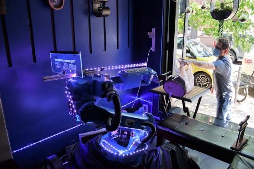 在费城(美国)的一家餐馆里,用机械臂送外卖。
