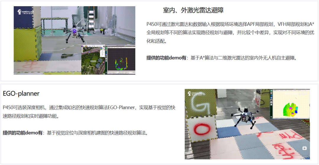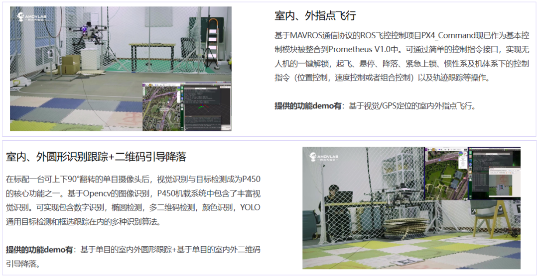P450遵循“ 让研发更高效 ”的设计理念,基于开源飞控PX4及机器人操作系统ROS打造,内置了开源自主无人机软件平台Prometheus,提供丰富的算法demo例程,涵盖控制、规划、SLAM、目标检测、深度学习、集群控制等多个无人机及人工智能相关研究方向,旨在为无人机的智能与自主飞行提供全套解决方案。