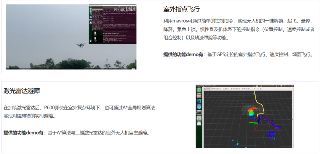 P600是阿木实验室推出的一款准行业级无人机研发平台,适用于无人机行业应用开发与室外环境下的无人机算法验证。是一款中等大小的无人机开发平台,具有大载重、长续航、可扩展的特性。可搭载激光雷达、NX板载计算机、三轴光电吊舱(10倍光学变焦)、RTK等智能化设备。实现吊舱框选跟踪,激光雷达避障,无人机位置速度指点飞行。本开发平台基于Prometheus开源项目,提供丰富的demo例程,涵盖控制模块、slam模块、规划模块以及目标检测模块等多个无人机及机器视觉相关研究方向,为无人机科研开发助力,致力于让研发更加高效。