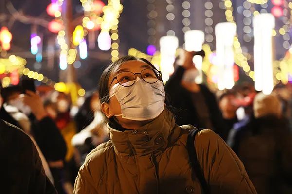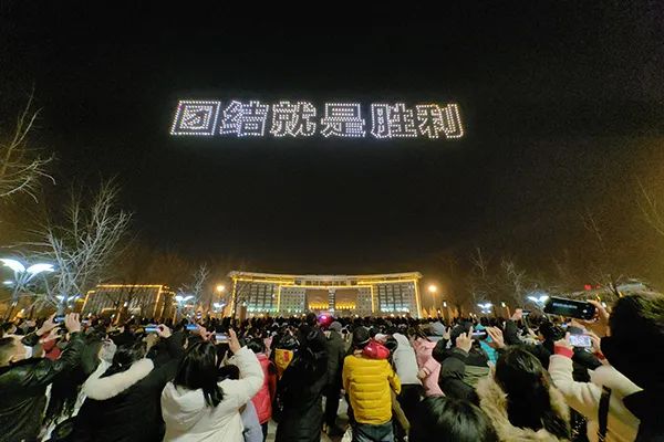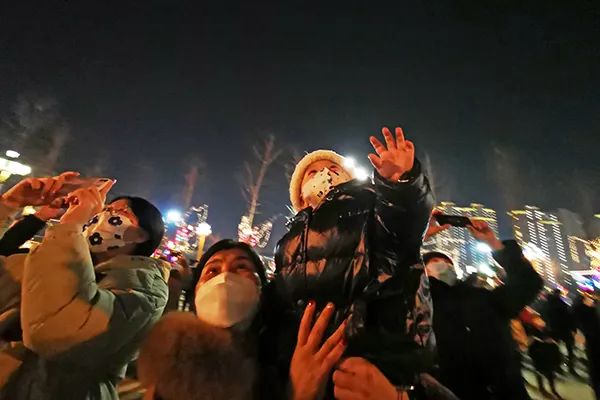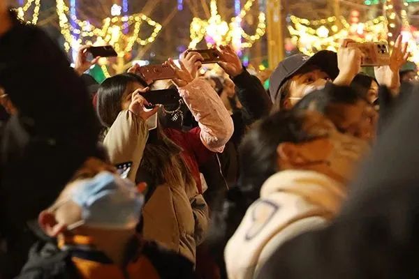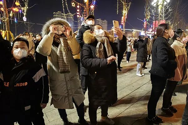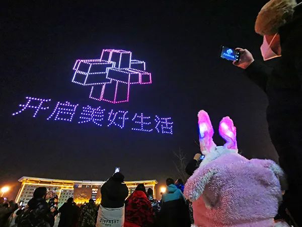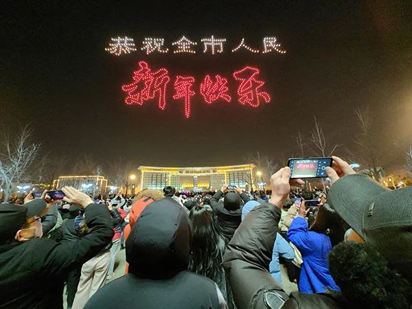 “我第一次观看大型无人机表演,非常震撼。”“真的是全神贯注,生怕错过每一个精彩的瞬间。”“看到凤凰出现在天空的时候特别兴奋,中国结也非常喜庆,希望新的一年能为我带来好运。”现场观众有的手持荧光棒,有的打开手电筒,跟随无人机的表演欢呼雀跃,也有人拿出手机拍照留念并转发给亲朋好友,在感受科技魅力与魔幻的同时,也体验着别样年味。