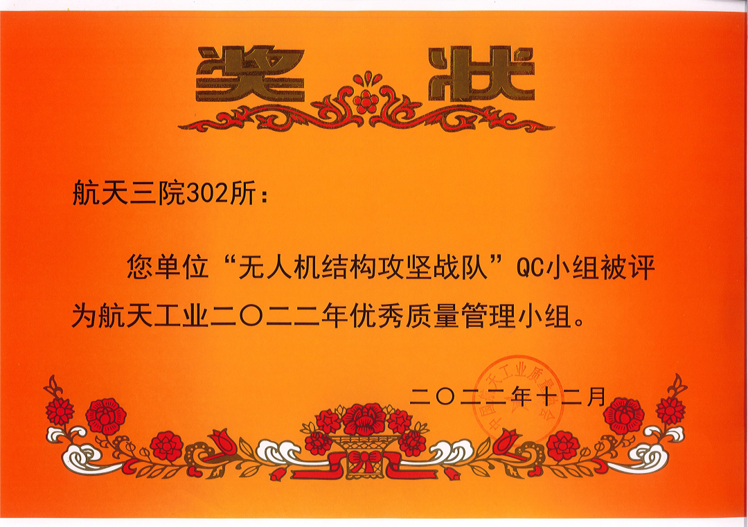 近日,海鹰航空公司“无人机结构攻坚战队”QC小组荣获“航天工业2022年优秀质量管理小组”称号,推动公司质量管理提升和质量文化建设取得突破!
