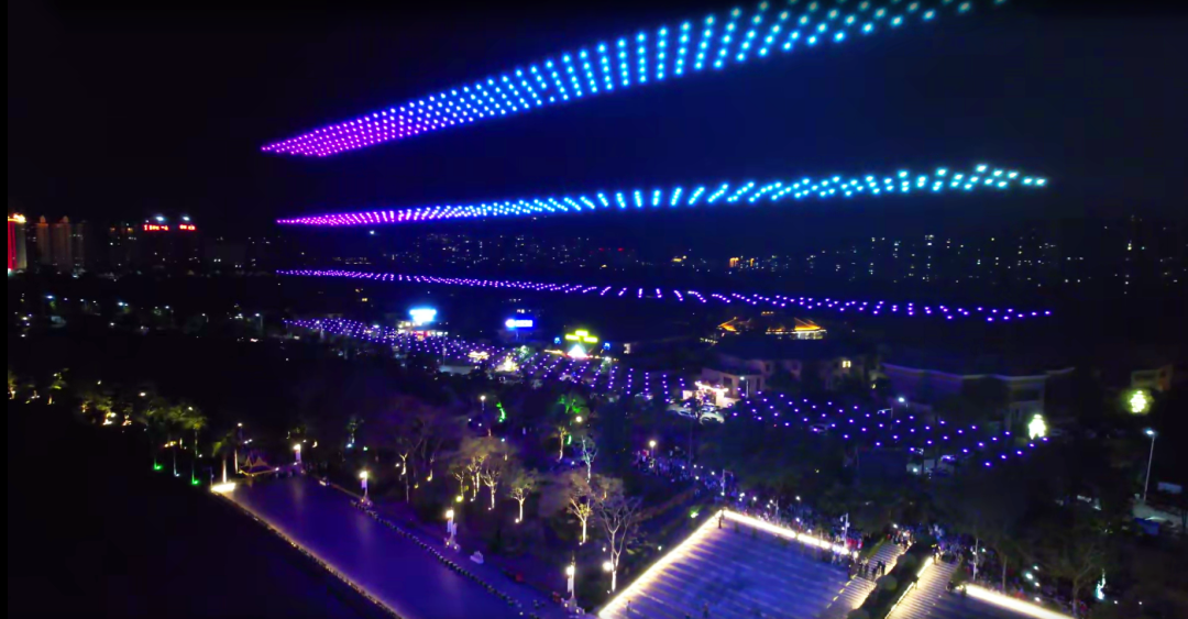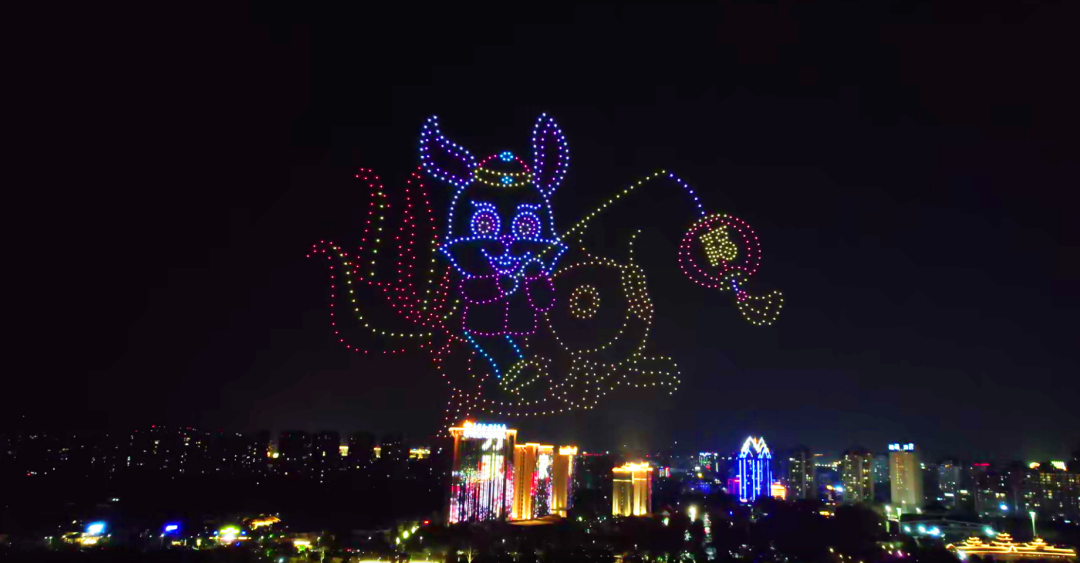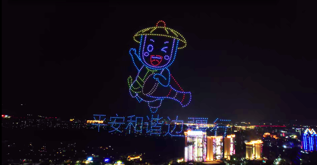 20点20分,无人机秀在澜沧江面曼妙的夜景中拉开帷幕。华灯初上,夜色阑珊。上千架无人机排列成多个方阵缓缓飞上夜空,它们以天空为舞台,通过一系列的阵型变化,配合动态灯光效果,呈现出“幸福在哪里西双版纳告诉你”“庆祝西双版纳傣族自治州建州70周年”“恭贺新春”等宣传主题语和“骑锦鲤的兔子”等动画图案,点亮了景洪市的夜空,为大家带来震撼的视觉盛宴。