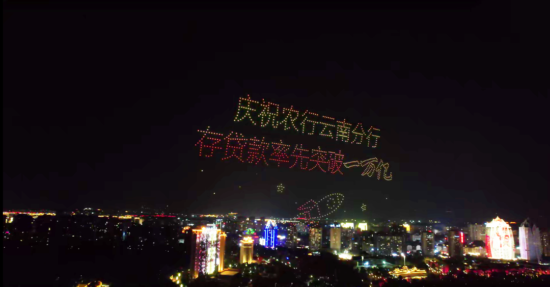 为庆祝新春佳节及“中国农业银行云南省分行存贷款规模率先突破一万亿”,中国农业银行云南省分行统一安排,由红河、丽江、大理、西双版纳、昆明、曲靖各分行开展无人机秀活动。1月19日晚,西双版纳站专场在告庄西双景澜沧江上空举行。