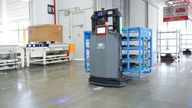 来自奥地利供应商 Agilox的新型Agilox ODM(全向移动小车的简称)是一款智能物流机器人,有效载荷高达 300 公斤。它不需要额外的基础设施或导航辅助设备,可以原地转弯并允许平行行驶。第一辆车在不到 12 小时内完成,每增加一辆车仅需 15 分钟。主要目标群体是制药和电子行业。