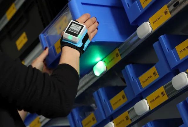 NIMMSTA的Light Tags更新了 pick-by-light 方法,承诺无需集成工作即可获得 80% 的效率。创新在于工业智能手表,这是一款由操作员佩戴的联网“手表”。在 NIMMSTA 应用程序中,为每个用胶带粘贴的灯标签分配了一个存储位置。当操作员靠近它时,智能手表和灯标会以相同的颜色和图案亮起。