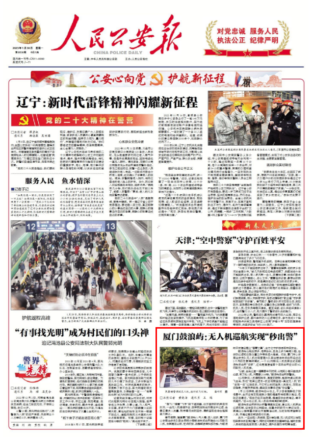 “以前,全岛巡查一遍需要半天时间,山地和小巷只能徒步巡逻,有了无人机,只需要20分钟。”鼓浪屿派出所民警说。