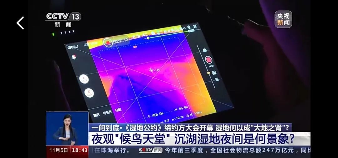 图丨我国湿地分布长江中下游湿地是我国最大的人工和自然复合的湿地生态系统,也是我国湿地资源最丰富的地区之一。作为扎根“江城”武汉本土的国家高新技术企业,普宙科技积极践行企业责任,依托以无人机为主的核心技术和解决方案,持续为长江流域湿地保护与生态恢复提供坚实的科技支撑。2022年11月5日,《湿地公约》第十四届缔约方大会在湖北省武汉市开幕,央视聚焦世界湿地大会,进行了《一问到底·夜观“候鸟天堂”沉湖湿地夜间是何景象?》的相关报道。本次报道中的夜间候鸟红外监测画面,全部由普宙科技的S400无人机搭载1K红外云台相机协助拍摄完成。