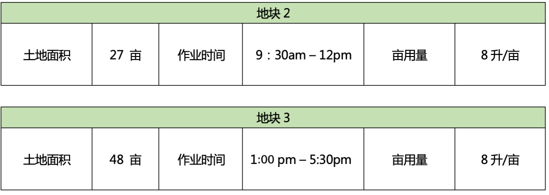 本次蚜虫防治作业覆盖 4 个地块,面积从 27 亩到 48 亩不等,分布在不同的山地。因为地势较复杂,整个作业过程采取自动+手动模式,飞手根据咖啡和榴莲树的高度不断调节飞行高度(范围:4.5 米到 6 米),采用较低的飞行速度 1.6m/s 进行喷洒。