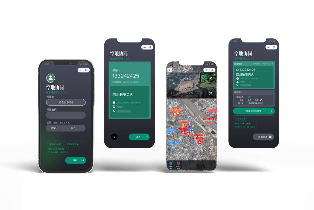 远度科技创新研发的空地协同指挥系统具备空地协同作业优势,该套系统基于无人机态势感知、无人机应急专网保障、无人机集群灭火等多项功能,消防员与指挥人员通过手机APP或小程序即可实时查看机载端火势视频以及获取机组、消防人员的动态位置信息,为应急救援和消防灭火任务提供可靠精准的数据支撑,可做出更加合理的人员调配对火场进行精准打击。