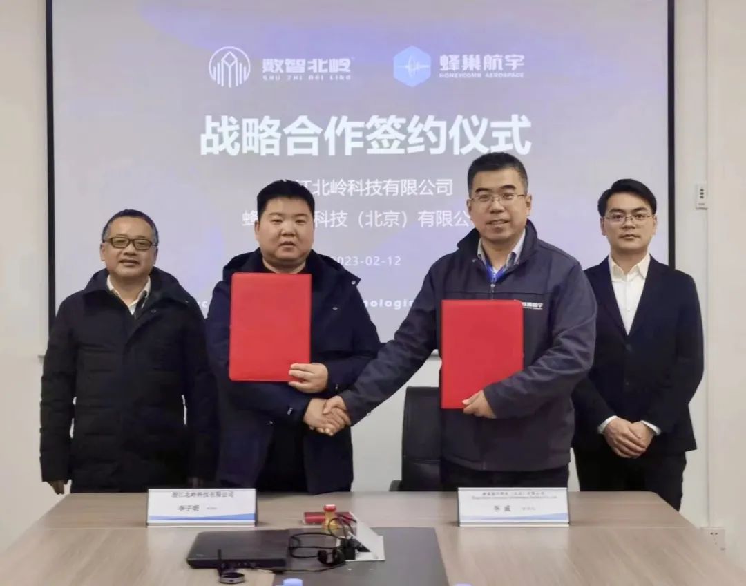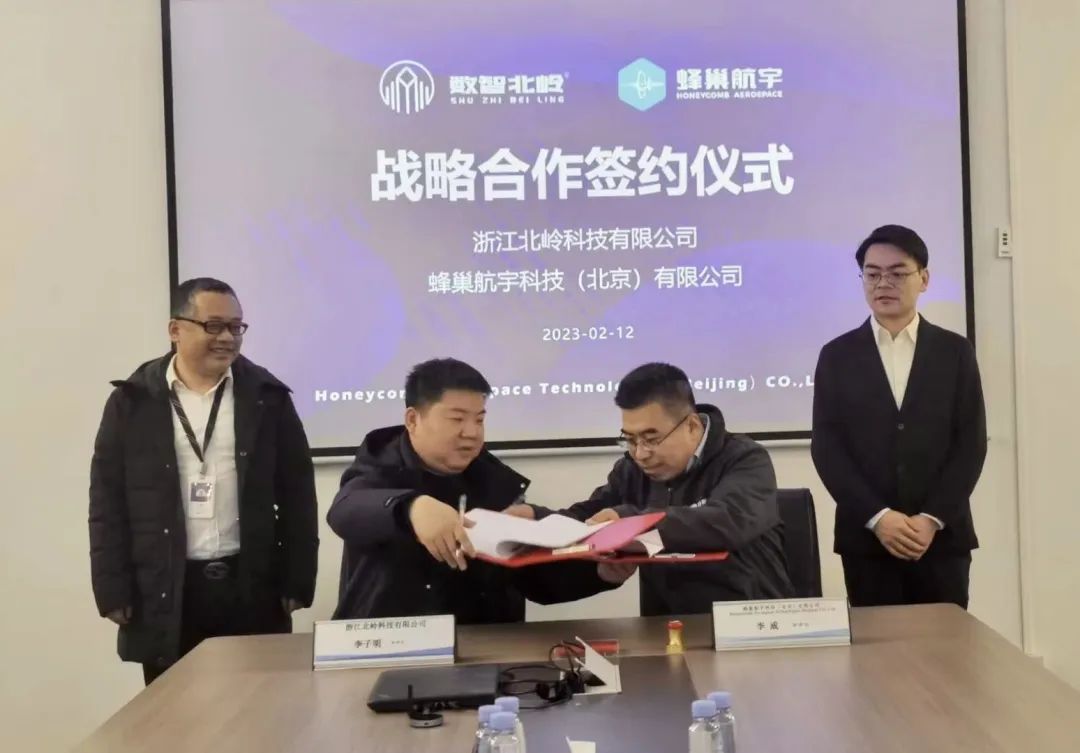 2023年2月12日,蜂巢航宇科技(北京)有限公司(以下简称“蜂巢航宇”)与浙江北岭科技有限公司(以下简称“北岭科技”)进行座谈交流会议,并签署战略合作协议。蜂巢航宇董事长李威、北岭科技总经理李子明等领导出席。