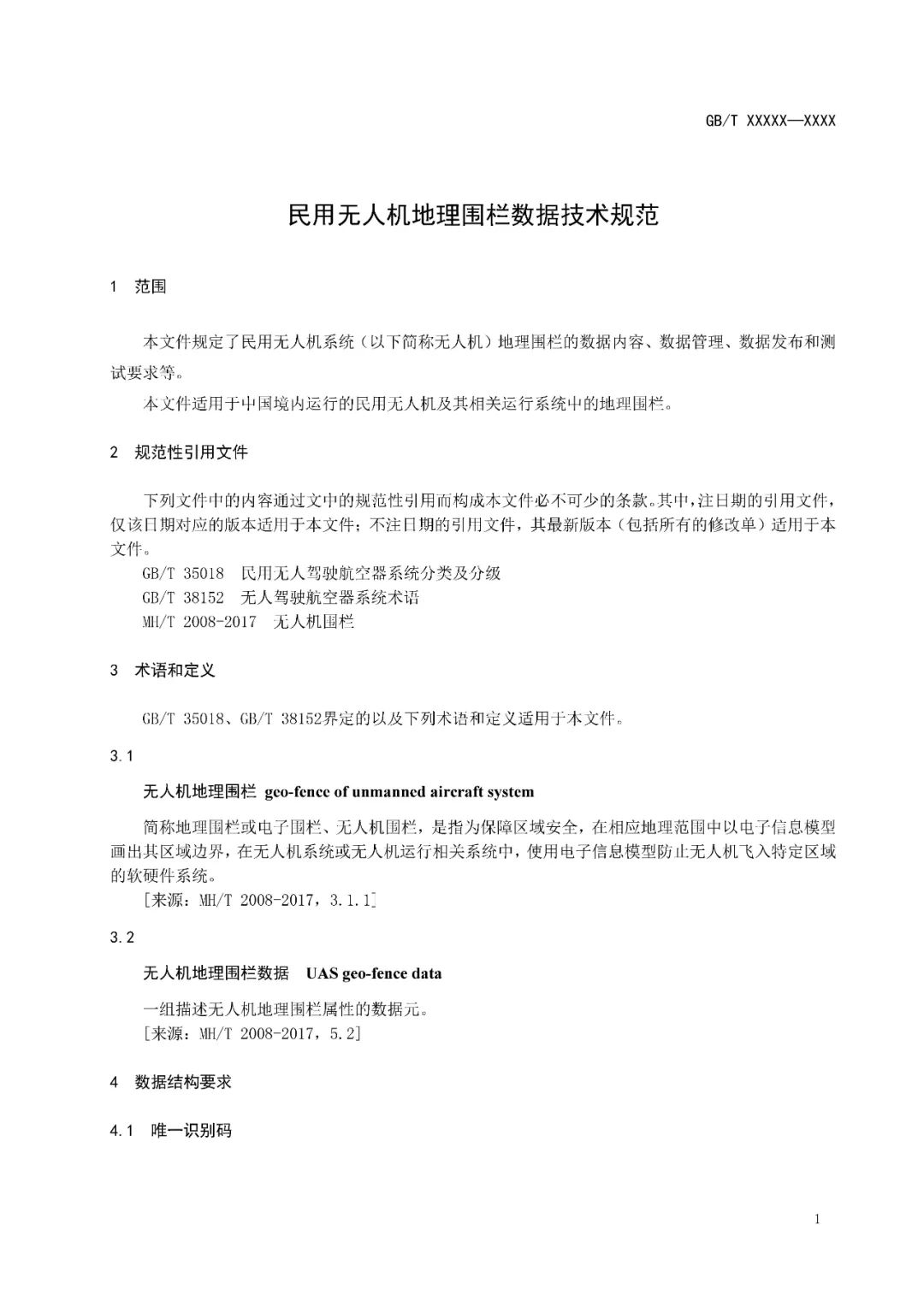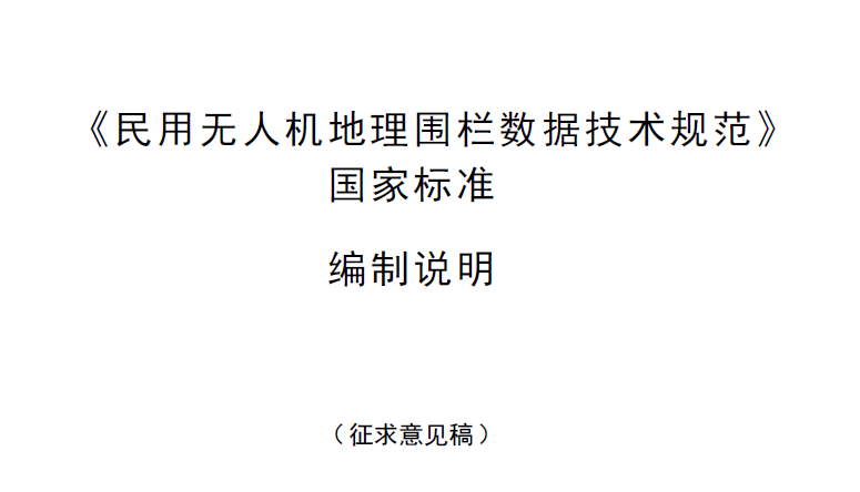 以下是《民用无人机地理围栏数据技术规范》征求意见稿,《民用无人机地理围栏数据技术规范》编制说明原文详见—全国标准信息公共服务平台。