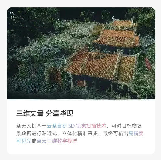 北京云圣智能科技有限责任公司,简称云圣智能,是一家从事四维实景地图、工业无人机、全自动机场、物联网云平台的人工智能企业,为行业及用户提供机、网、云一体化系统解决方案。公司致力于挖掘超低空与地面的数据资源、信息资源。