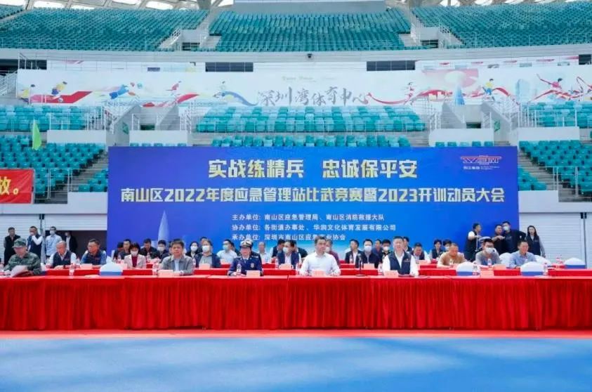 3月16日,深圳市南山区2022年度应急管理站比武竞赛暨2023年度开训动员大会在深圳湾体育中心举行。