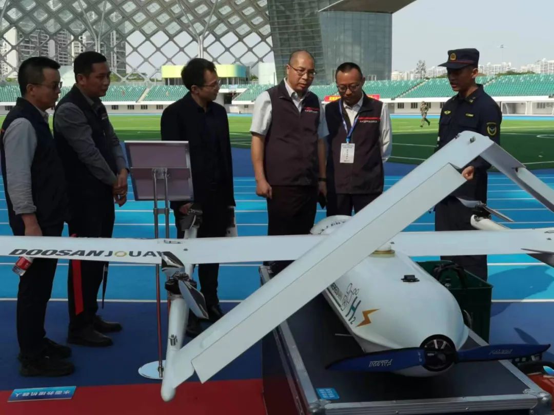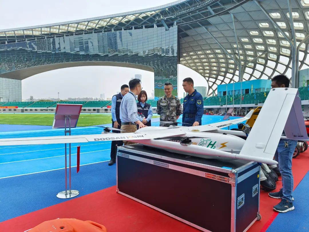 本次大会中,斗山创新作为唯一应邀无人机企业参加。通过使用斗山创新的DT30N氢动力无人机平台,对深圳湾体育中心大会外场的火情搜索以及灭火实况转播,进一步展示了氢动力无人机的机动性以及作为超长续航飞行平台的优势。