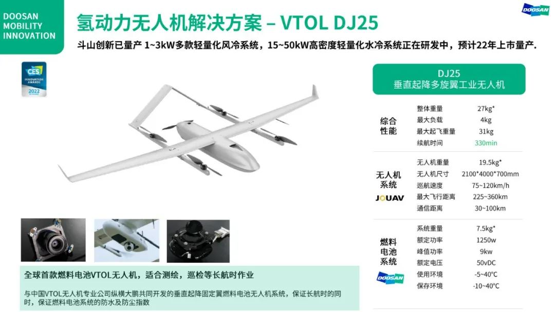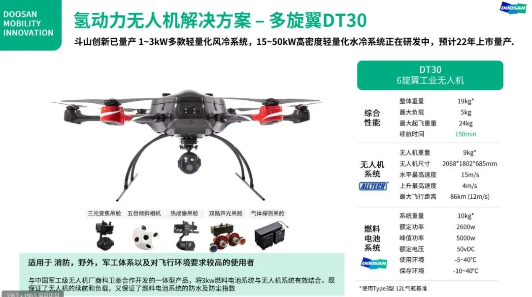 斗山创新—全球领先的移动式燃料电池系统供应商 (无人机,机器人,备用电源等)