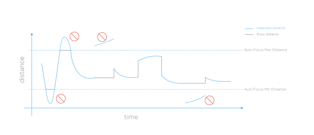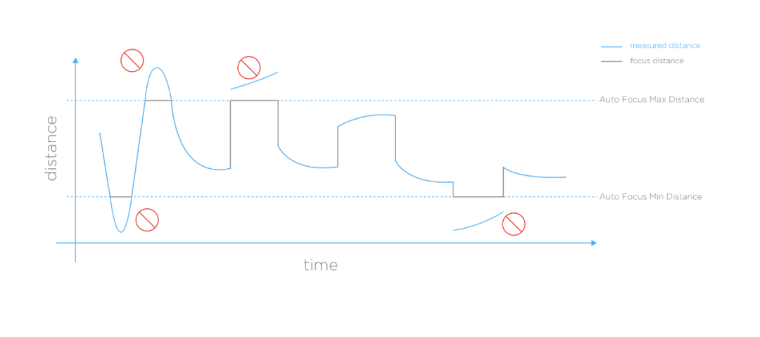 即使激光测距仪测量范围在测量用户定义的最小/最大焦距范围内,但与初始聚焦相比仍有显著变化,镜头聚焦范围也不会改变。
