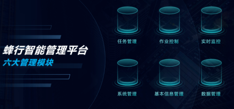 蜂行智能管理平台:控制软件平台有六大管理模块,支持多台设备状态实时查看,飞行数据实时接收,飞行数据在线处理等任务的控制管理,实现信息汇聚、整合、存储、管理与分发,功能强大且智能。