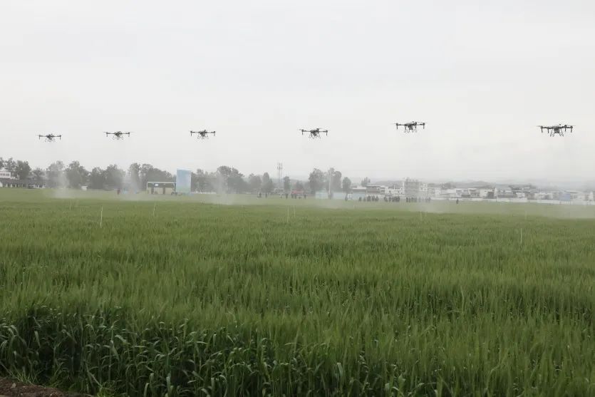 目前这两款产品已踏入春耕战场,部分地区小麦已经进入“一喷三防”阶段,丰鹏400、丰鹏150已经开展打药作业,助力小麦春季田管工作。接下来丰鹏400将继续为早稻播种、撒肥服务。农用无人飞机智能化的操作不仅节省了春耕春管的用工成本,还能抢抓时机做好施肥、虫害防治工作,让作物长势更佳,品质更好!我们来看一组丰鹏400、丰鹏150的作业英姿的图片。