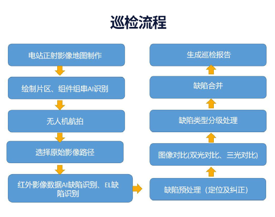 光伏电站无人机智能巡检系统通过对无人机巡检获取的可见光、热红外图像、电致发光原始图片进行分析,实现对光伏组件异常的定位与识别,并自动导出巡检消缺指导报告,供光伏电站运维人员使用。