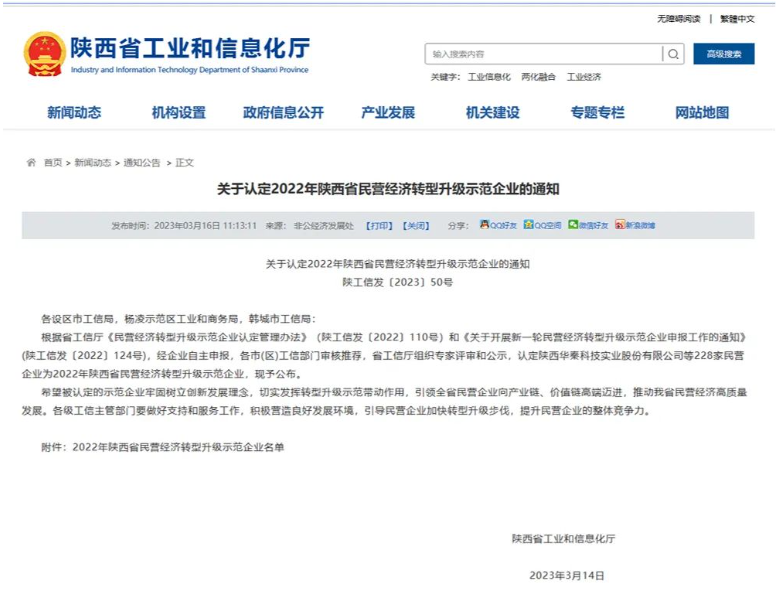 2023年3月16日,陕西省工业和信息化厅公布了“2022年陕西省民营经济转型升级示范企业”名单,西安羚控电子科技有限公司榜上有名,获评2022年度“陕西省民营经济转型升级示范企业”荣誉称号。