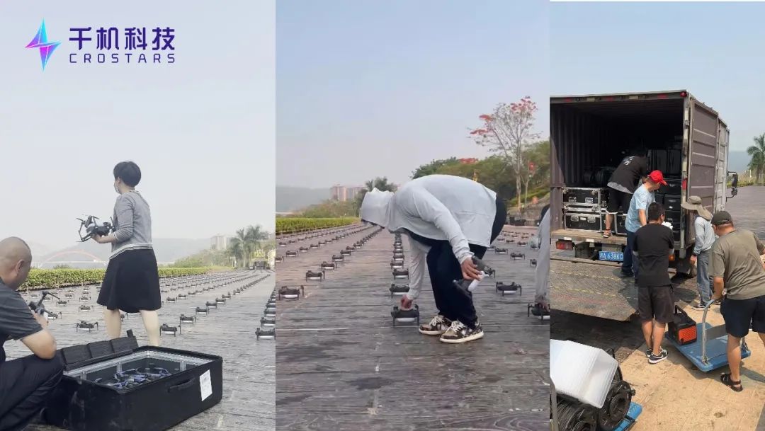 千机科技工作人员提前10小时便赶往活动现场开始准备工作,摆放飞机调试设备,精益求精,以保障美轮美奂的视觉效果。