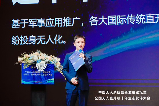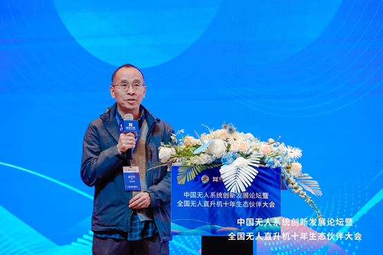 联合飞机创始人、董事长兼总裁田刚印先生分享了以“中国无人直升机的十年发展与未来”的主旨演讲,与大家分享了中国无人直升机发展历程,十年努力所取得的技术突破与应用成果,并分享无人直升机未来的发展趋势。从破局到引领,以不同典型构型飞机牵引技术突破,带动国内工业级无人直升机发展,我国自主研发的无人直升机从萌芽到繁盛,甚至逐步跃升为世界领先水平。目前,工业级民用无人直升机近十年内已越来越多地应用于应急救灾、地质地貌测绘、森林防火、地震调查、边境巡逻、海事侦察等领域。我国民用工业级无人机领域经过近几年的发展,各类应用的无人机已百花齐放。未来,联合飞机仍将坚持创新驱动发展与关键核心技术攻关,以中大型、长航时、载人载货为发展方向,打造安全、易用、经济的无人直升机,推动无人直升机产业更好地发展。