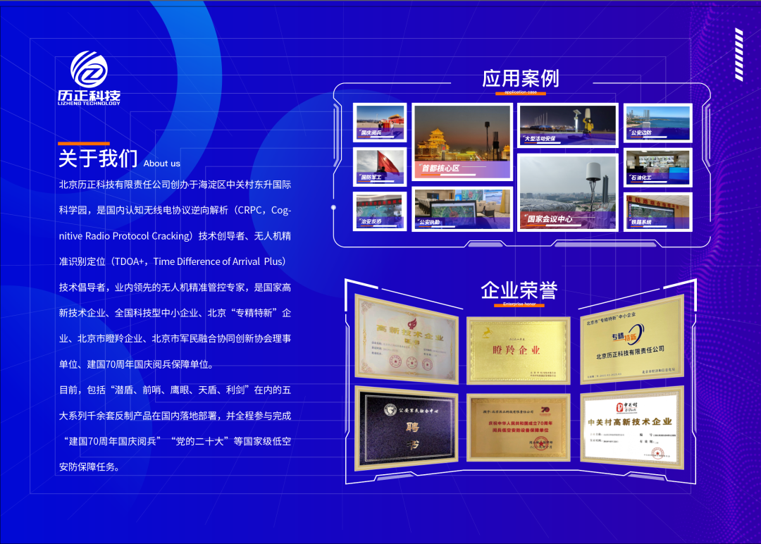 “能做到精准定位无人机、精准定位飞手、精准轨迹跟踪、精准识别机身序列号。”历正科技的代表介绍道。