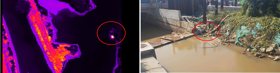 在水质保护巡查场景中,重点是入河排污口情况,全自主无人机巡检系统以高空视角,30倍可见光吊舱2000万像素超清画面采集,RTK厘米级精准定位,实现对区域内排污口的各种动态信息把握和及时了解,夜间可更换为红外热成像吊舱,基于热红外相机的测温功能,无人机可实时检测到温度异常的疑似排污口,自动取证拍照,报警并上报当前无人机坐标位置,真正意义上实现24h不间断巡查,空间+时间双重维度不留死角。