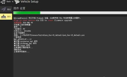 (3)用 USB 线连接 Pixhawk 自驾仪到电脑, 此时软件会自动识别 Pixhawk 硬件,在界面右侧弹出固件配置窗 口,勾选第一项“PX4 ***”,然后点击 “确定” ,QGC 开始自动下载并 安装最新的 PX4 固件到 Pixhawk中
