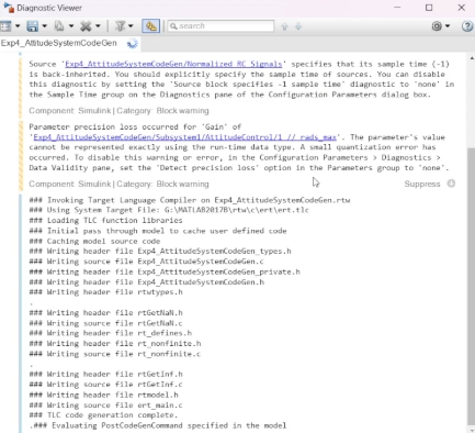 (2)打开本文件夹下的 “Exp4_AttitudeSystemCodeGen.slx”文件。