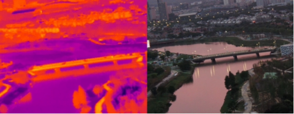 无人机载热红外云台相机,观测河道所有物体发射或反射的不可见热辐射,无论光照条件如何,夜晚也能无阻碍检测,巡查排污口,对违法排放污水进行快速溯源。进行精准快速定位,强化监督发现机制,为河道长效管理工作的精细化、智能化提供有力支撑。