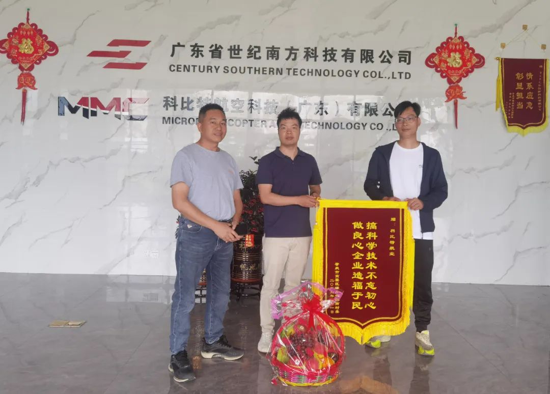 历经两天紧张的搜索,失联老人于2023年4月29日上午9时被成功搜救,平安与家人团聚。其家属为表达对我司感激之情,特送来“搞科学技术不忘初心,做良心企业造福于民”的锦旗。