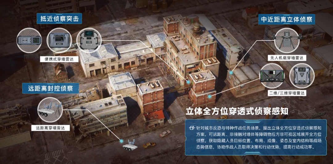 穿墙雷达的出现,大大提升在城市巷战中的探测感知和侦察探测能力,对构建全景式态势感知场景提供极大的帮助。