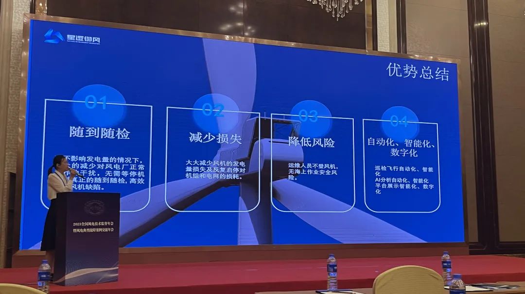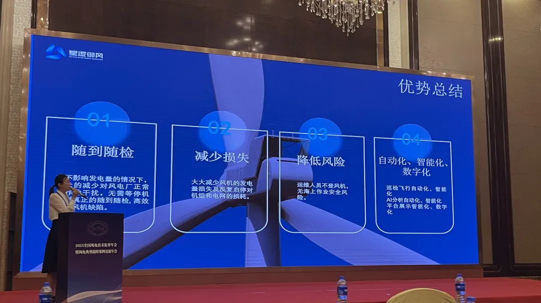 会上,星逻智能技术总监肖素枝发表演讲,通过阐述无人机在风机叶片不停机巡检及智能分析中发挥的作用,从而建构起风电在新能源发展过程中的新型智能化管理模式,现场与会人员兴趣满满,反响热烈。