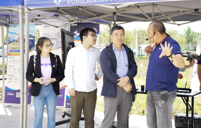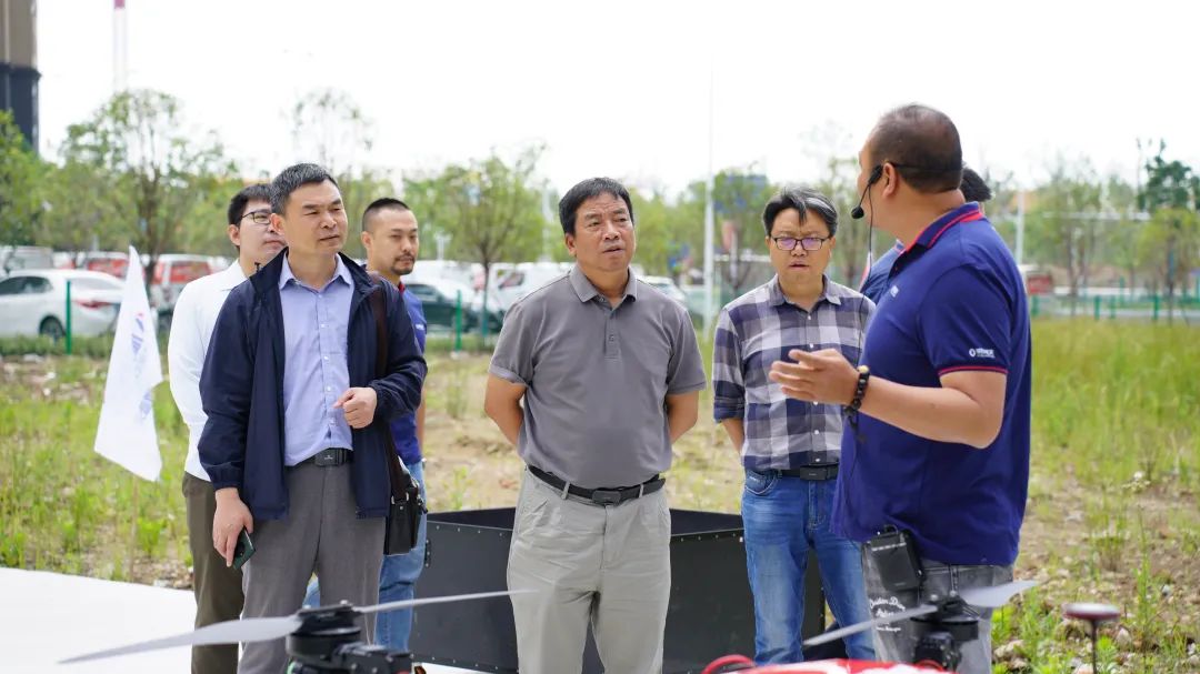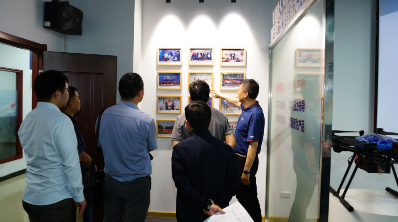 飞行演示结束后,领导一行前往企业的行政和研发中心,由我司总经理王军、副总经理李俊涛等高管全程陪同带领参观研发车间、无人机应用展厅、无人机应急服务装备等。