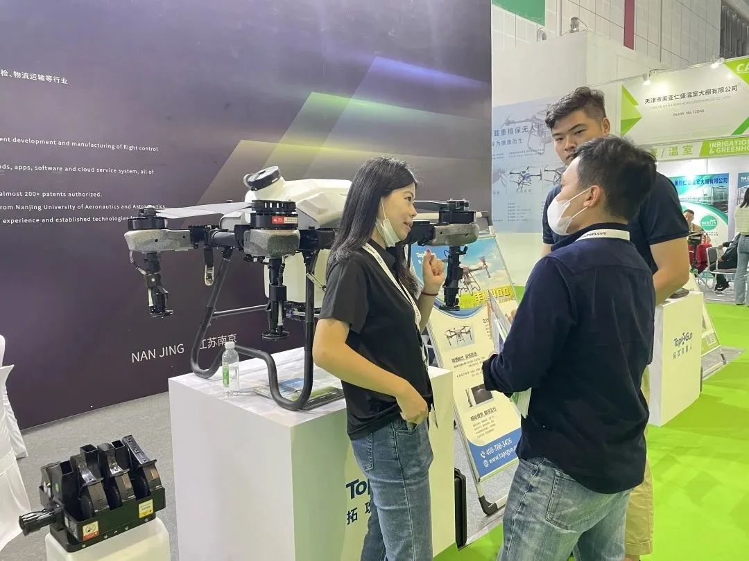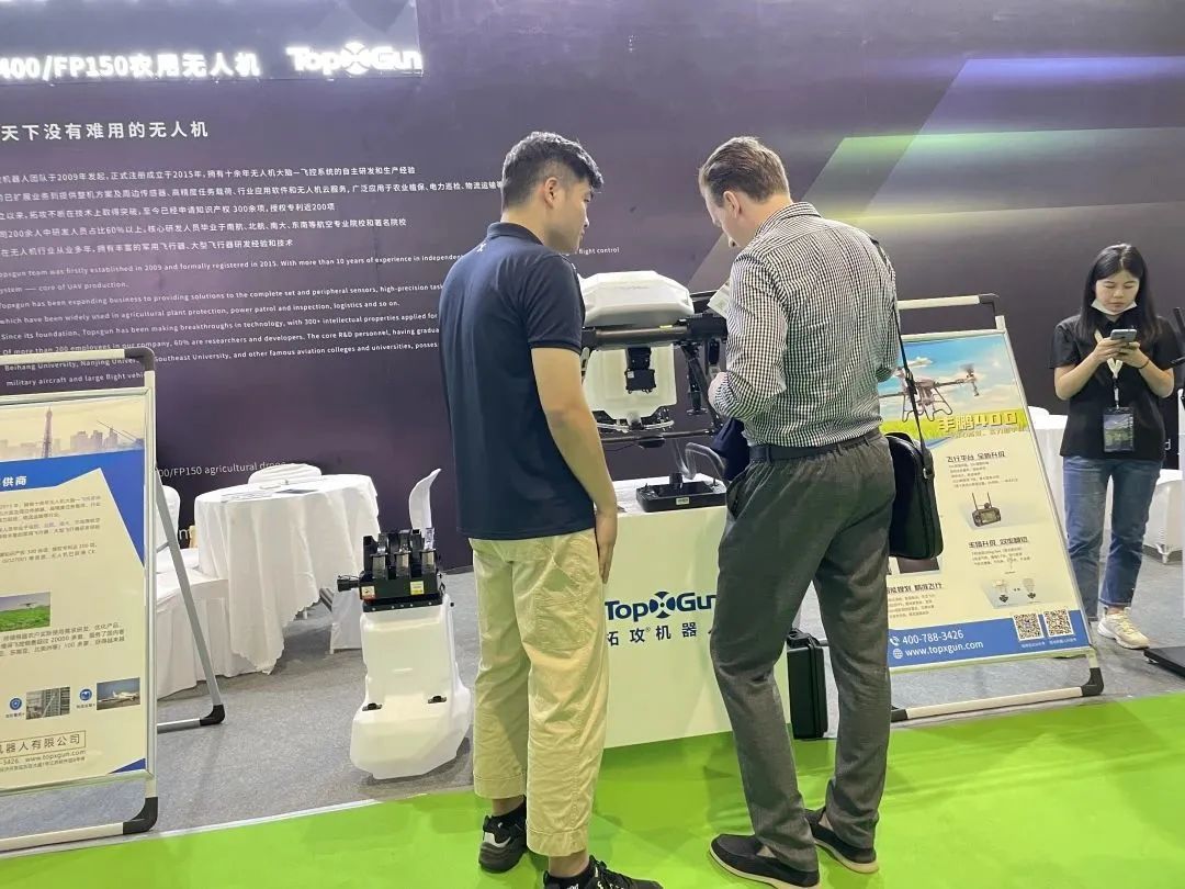 本次拓攻机器人的展位位于7.2馆农用航空展区72D46位置,重点展示了2023年主打产品丰鹏400和丰鹏150农业无人飞机,受到了专业观众的高度关注。在展会期间,现场人潮涌动,热度不断攀升,不断吸引国内外观众驻足参观。拓攻机器人团队以饱满的热情与大家交流互动、深入探讨,展现了绝对的产品实力和优质的服务能力。