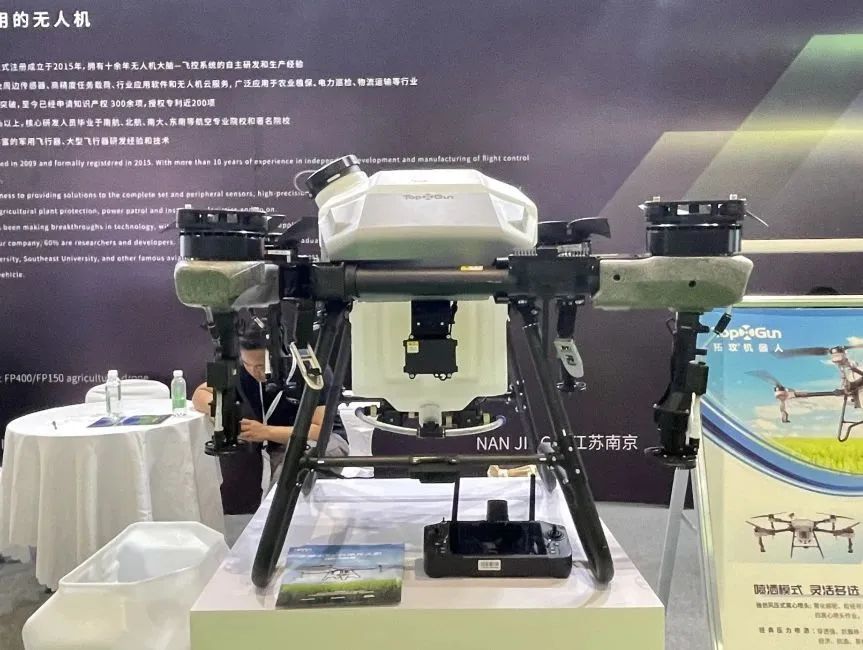 在此次展会上, 拓攻机器人展示的这两款机型可以满足不同区域用户的需求,丰鹏400主打高效作业,支持喷洒、播撒功能,喷洒药箱额定容量35L,支持压力喷头、双离心、四离心三种喷洒方案,播撒额定容量55L,最大载重40公斤,播撒效率可以达到100kg/min(复合肥为例)。丰鹏150主打单兵作业,尤其适合旱田区域零散的小地块。它的喷洒药箱额定容量15L,综合效率可以达到130亩/小时。用户可以结合自己的实际情况,灵活选择适合自己的产品。