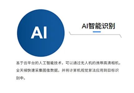 基于巡检图像进行智能开发,无人机巡检中拍摄的巡检视频经过智能图像识别,通过无人机携带不同的载荷,配合后端云平台的AI分析处理。AI可以实现图像识别、运算控制,能实时对特征目标进行精确定位,实时控制云台对目标进行跟踪拍摄,并通过图像识别精准拍摄目标对象。